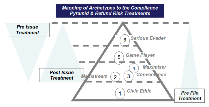 Menurut OECD (2011), perlu adanya kesesuaian antara kebijakan pengembalian kelebihan pajak dengan perilaku kepatuhan Wajib Pajak. Terdapat tiga treatment yang dilakukan oleh pemerintah: pre file treatment, post issue treatment dan pre issue treatment. Semakin tidak patuh Wajib Pajak pada ketentuan perpajakan, atau semakin sering Wajib Pajak melakukan kesalahan yang disengaja, maka semakin kecil Wajib Pajak memperoleh pengembalian kelebihan pajak. Perhatikan bagan dibawah ini