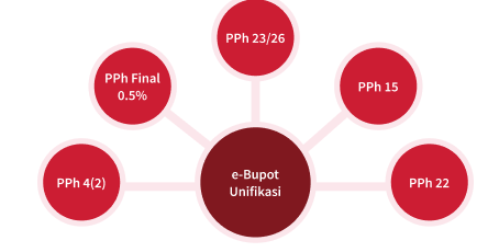 Pasal 1 angka 7 PER – 24/PJ/2021 menyatakan bahwa Surat Pemberitahuan Masa Pajak Penghasilan (SPT Masa PPh) Unifikasi adalah SPT Masa yang digunakan oleh Pemotong/Pemungut PPh untuk melaporkan kewajiban pemotongan dan/atau pemungutan PPh, penyetoran atas pemotongan dan/atau pemungutan PPh, dan/atau penyetoran sendiri atas beberapa jenis PPh dalam 1 (satu) Masa Pajak, sesuai dengan ketentuan peraturan perundang-undangan di bidang perpajakan. Kemudian, Pasal 2 ayat (3) PER – 24/PJ/2021 dinyatakan bahwa SPT Masa PPh Unifikasi meliputi beberapa jenis PPh, yaitu: PPh Pasal 4 ayat (2); PPh Pasal 15; PPh Pasal 22; PPh Pasal 23; dan PPh Pasal 26. Sarana untuk melaporkan SPT Masa PPh Unifikasi ialah melalui aplikasi e-Bupot. Untuk lebih jelasnya Perhatikan gambar 1 di bawah ini.