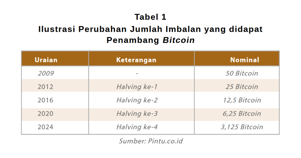 imbalan inilah yang semakin lama semakin berkurang, tepatnya menjadi setengah imbalan sebelumnya di setiap